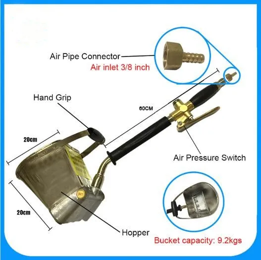 Hightop Stucco Sprayer Hopper Gun can be used for plastering a stucco house, traditional plastering of stucco such as one coat or three coat stucco or GFRC. The range is from 1/8" heavy texture to 1" thick structural layers. It can also be used for applying plaster, hard coat stucco, EIFS, small scale shotcrete, cement, concrete, papercrete, earthen mixes and more. Hopper made from stainless steel material, with a life time anti-rust guarantee.