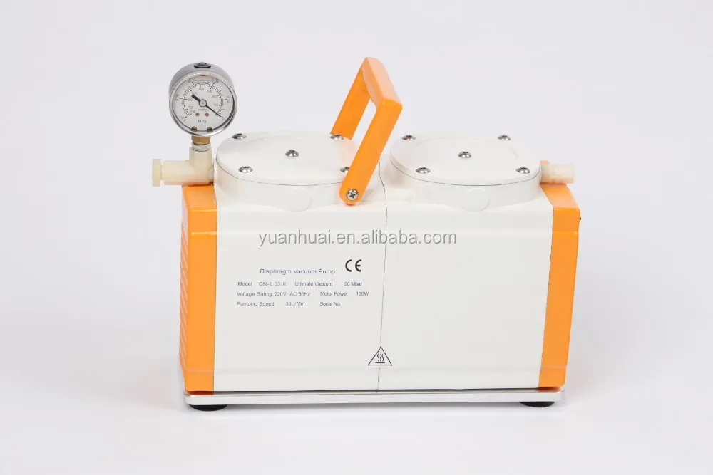 If your distillation has corrosive gas, we suggest YHDP-20 diaphragm vacuum pump, made of PTFE material.