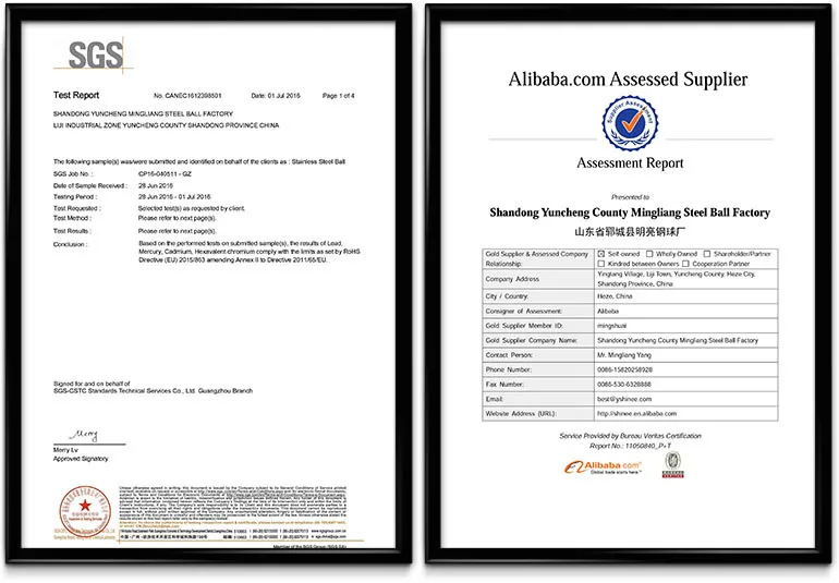 Shandong Yuncheng County MingLiang Steel Ball Factory was established in 2000, covers a vast area of 8000 square meters, with over 30 professional and technical specialists, in which 8 of them are senior technical experts. Our factory is equipped with over 200 advanced production facilities and over 30 testing equipment for steel balls inspection and quality guarantee.