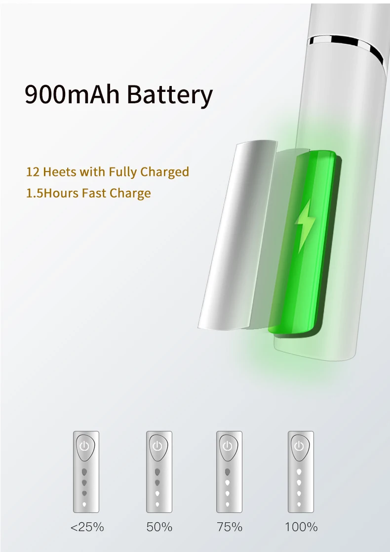 2:Powerfull 900mAh Battery :1 full charge for 15 tobacco .