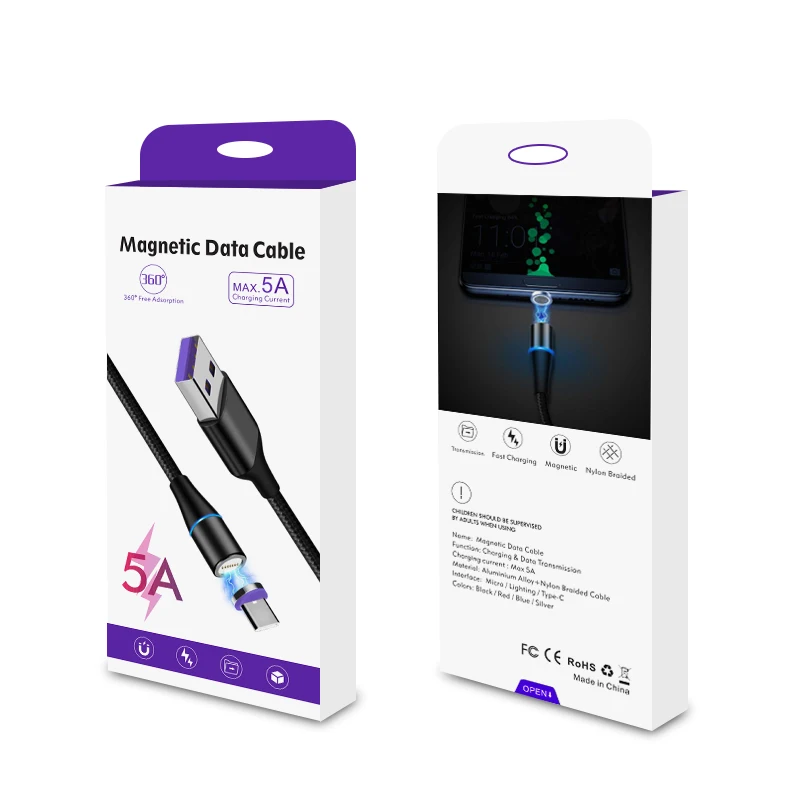 Charger Type-c Usb-c Phone Led 360 Degree 5a Quick Charge Type C Braided 3-in-1 High Quality 3 In 1 Magnetic Usb Data Cable