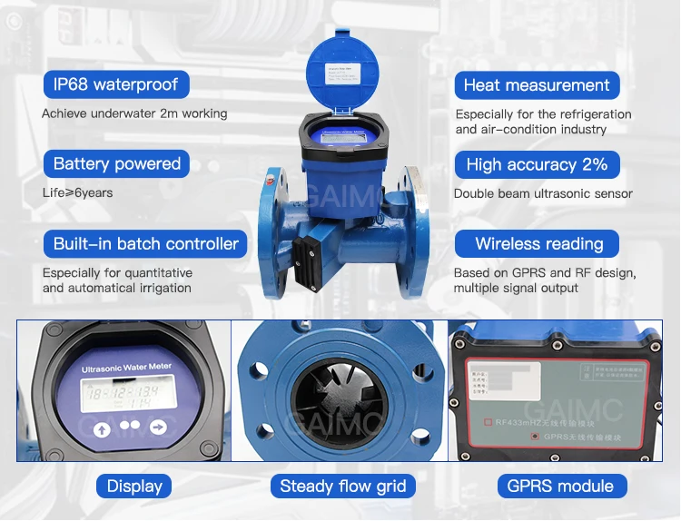 IOT ultrasonic water meters with GPRS module (Battery powered,external power supplied optional), can achieveautomatic wireless meter reading via GPRS data storage cloud.
