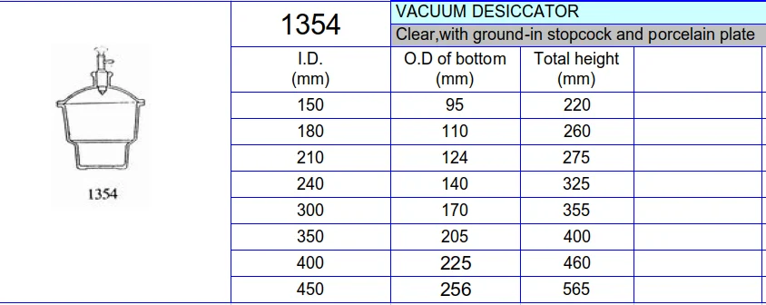 | Article: | Vacuum Desiccator; | Total height: | 220mm-565mm; |