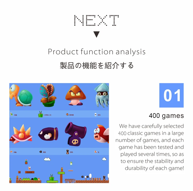 | funtion | Build in 400 retro games |