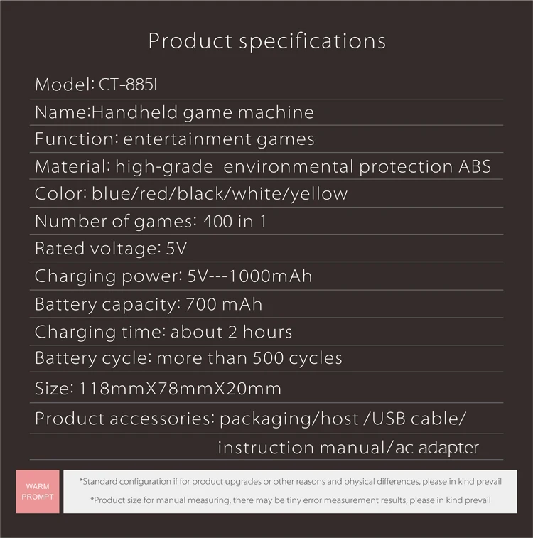 | Material: | ABS; | Game: | 400 games; |