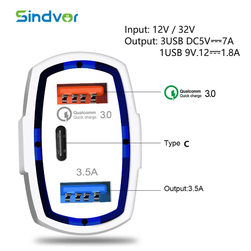 | Name | Sindvor QC 3.0 3.5A Multi Usb 1 port Usb-C 3 Ports Quick Charging Type c PD Car Charger For iPhone For Android Charger |