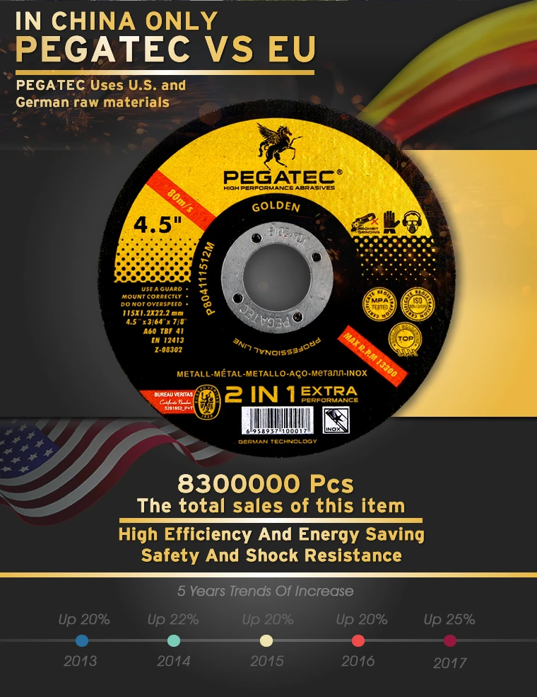 -Used for 4.5" angle grinder,115mm diameter cutting wheels are suit to Europe,South-America,Middle-east and etc. -1.0/1.2mm thickness can fastly cut different materials,minimize the friction and increase sharpness. -Have the excellent abrasive performance and extra working life in application of stainless steel, obvious advantage among the competition of various brands. -Chain-lock box and retail packing will bring convenient marketing image. |