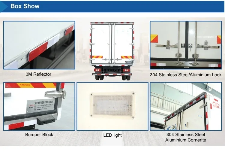 This truck is made up of vehicle chassis, insulation box, refrigeration unit and temperature recorder, etc.