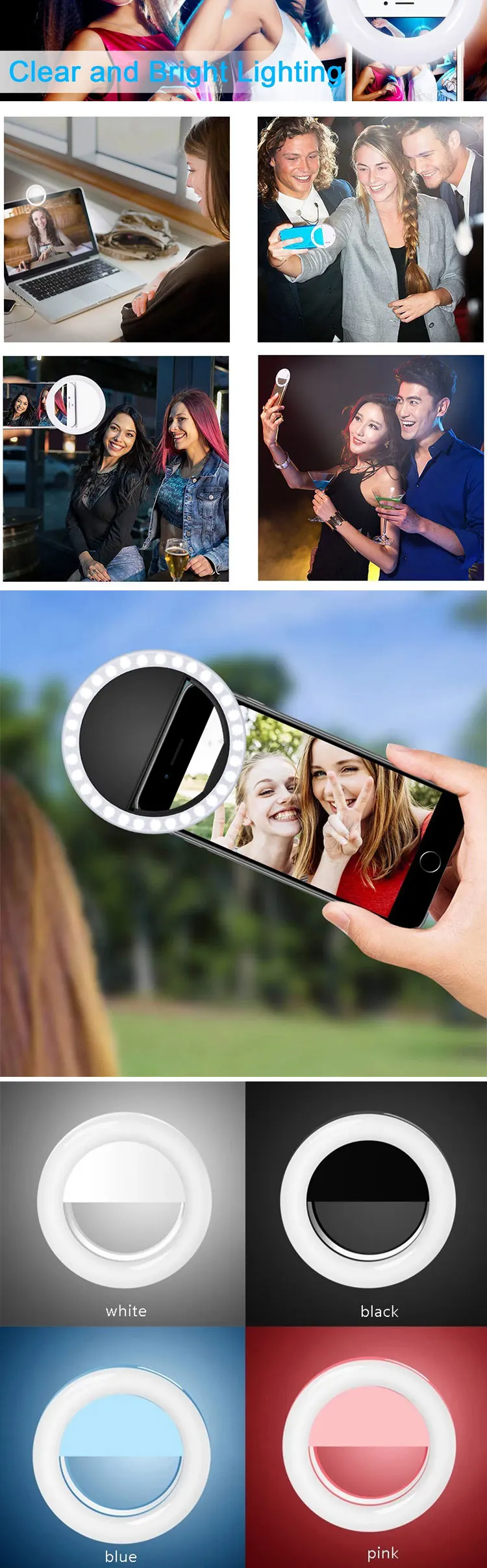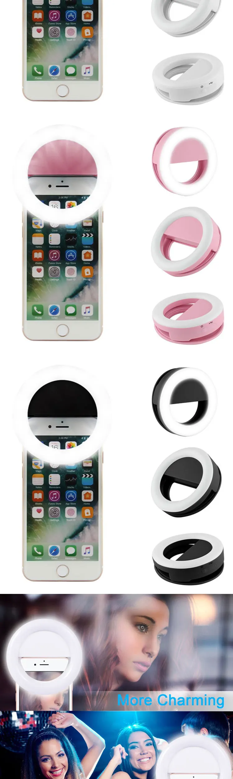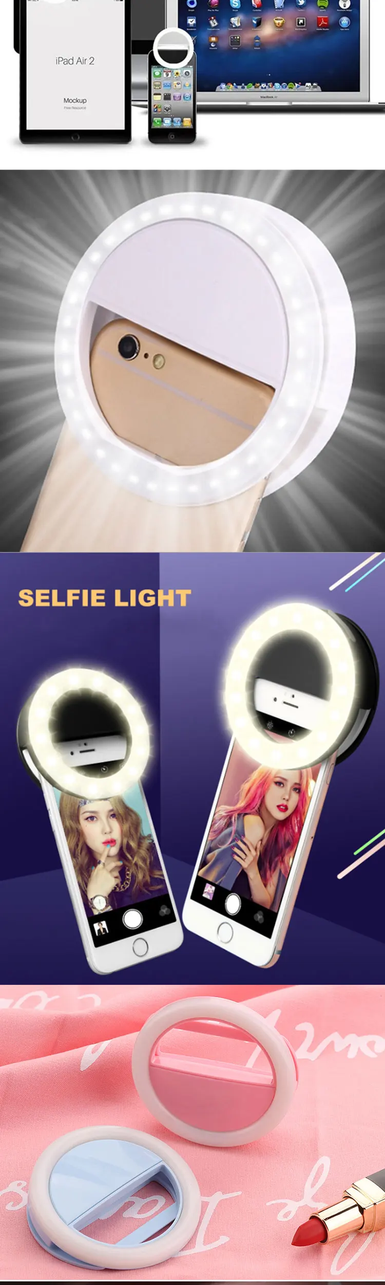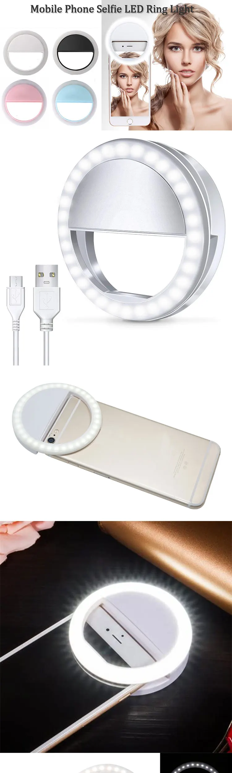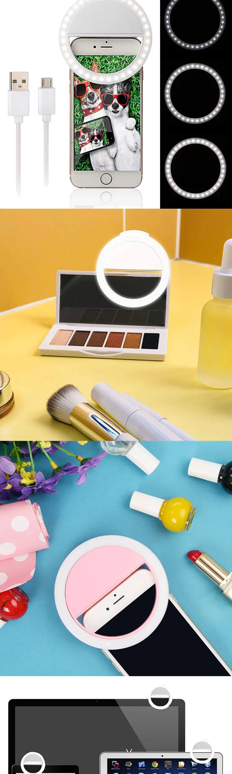 Portable Rechargeable USB Camera Clip Photography Video Mobile Phone LED Ring Selfie Light