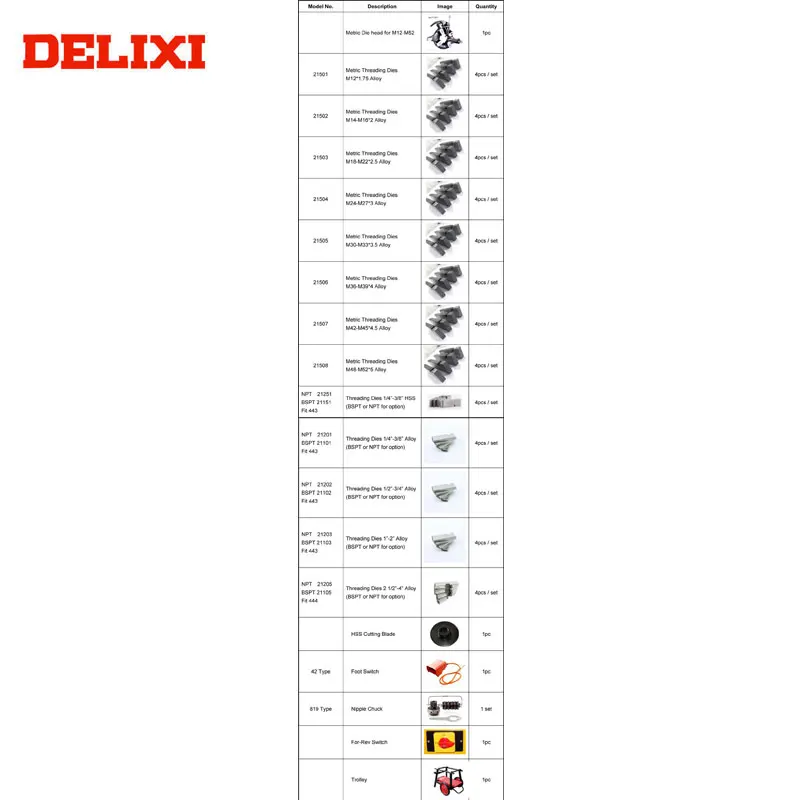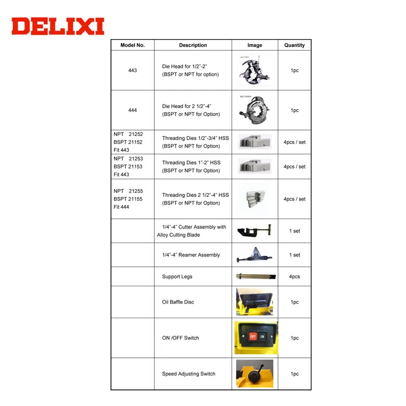 5.Standard Spare parts of DLX100F 1/2" To 4" 1500W 4 in. Used Pipe Threading Machines For Sale
