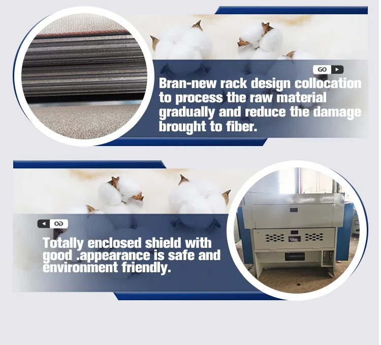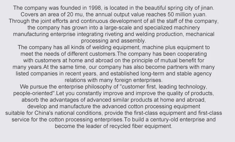 It is mainly used to sort out and reclaim the raw material or lefttower from industries producing cloth,thrum,hemp,cotton spinning,wool spinning,non-woven fabrics,polyester,etc