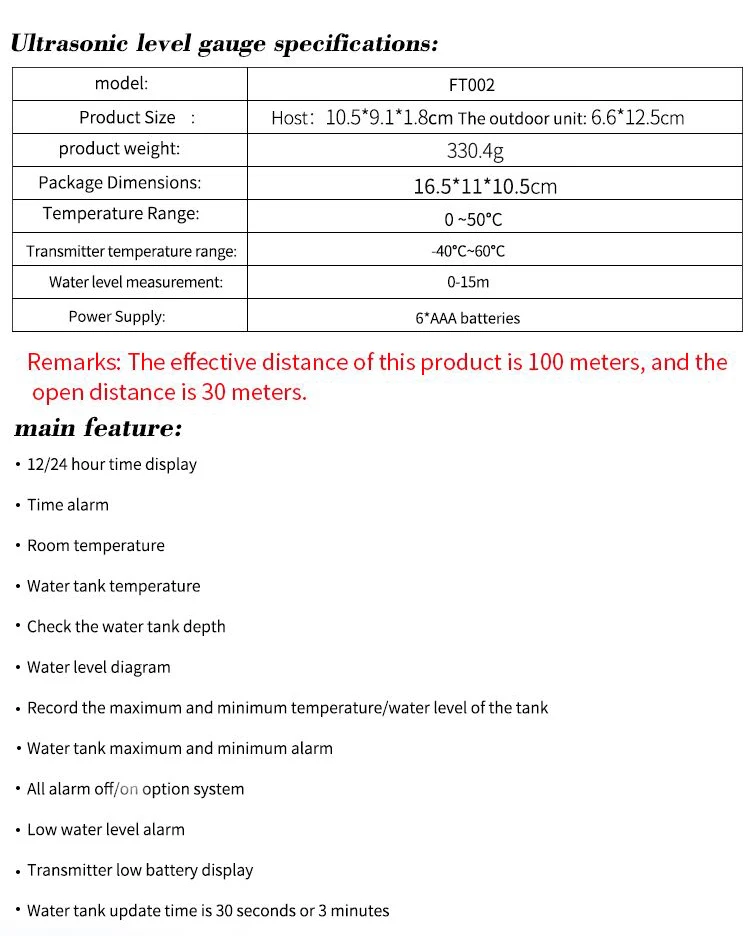 Product name:Ultrasonic level gauge;Accuracy:±0.03m;