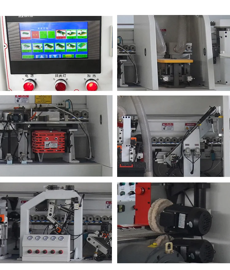 1.Full-automatic edge banding machine function include glue,head together,rough repair,refine,Scraping edgeand polishing.