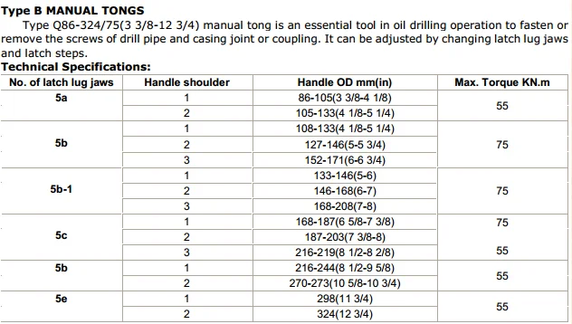 TYPE B MANUAL TONGS