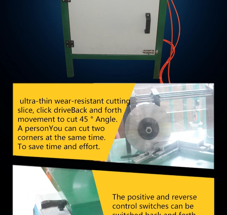 This manual refrigerator door gasket cutting machine is used to cut 45 degree on the both ends of the gasket, it has feature of easy operate, convenient moving,. the blade is rotated by the motor and move by the air pressure.