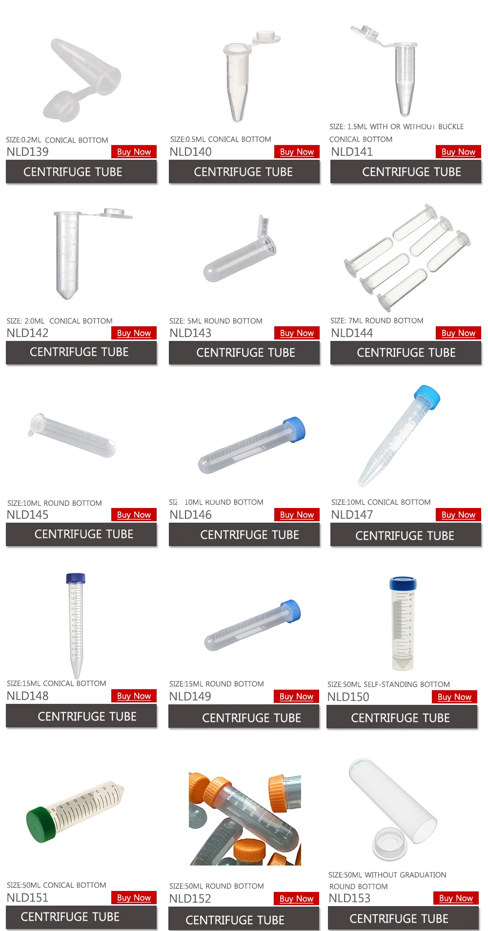 | NLD140 | Centrifuge Tube | 0.5ml | 25000 | 56X42X42 |