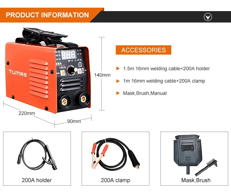 | Welding Current/Voltage Range: | 20-180A; | Usage: | Welding; |