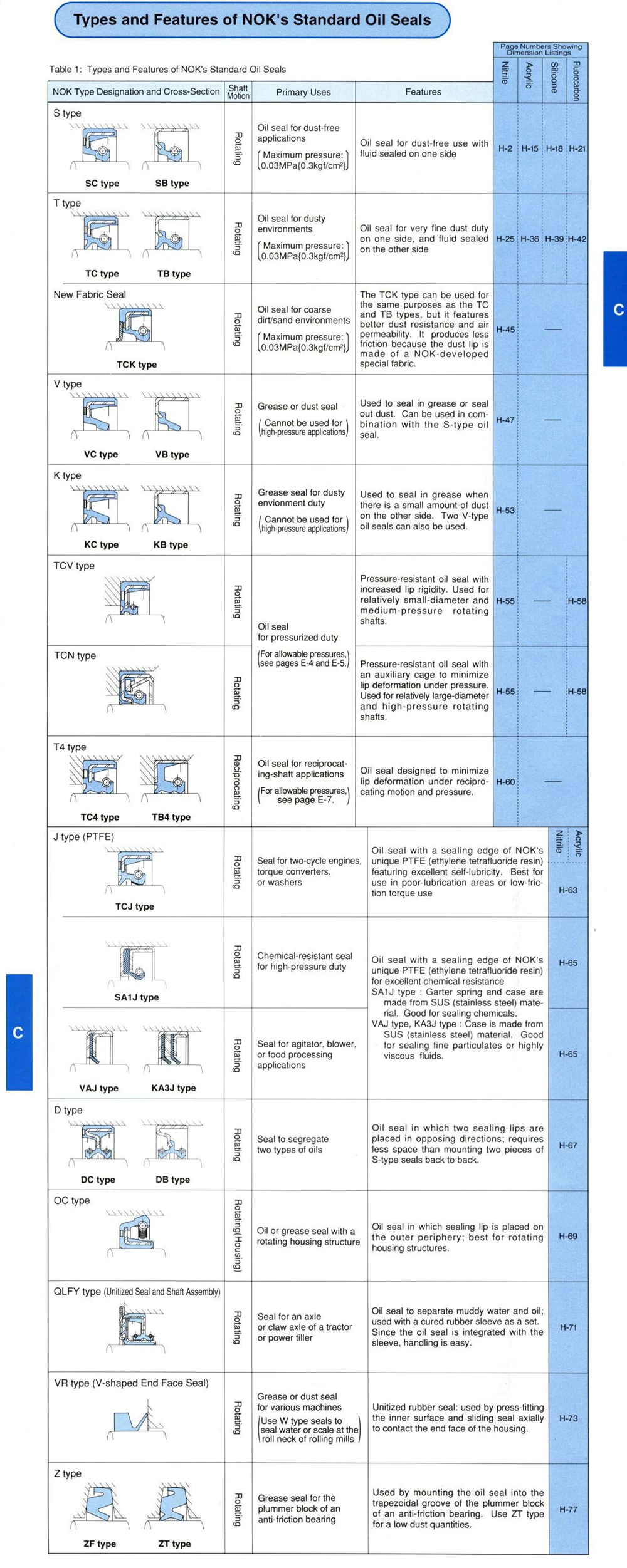 | NOK Oil seals are used for automobile engines and geared motors, and are designed mainly to prevent oil leakage from the end of a rotating shaft, or dust intrusion from the outside air. nok oil seal catalog |