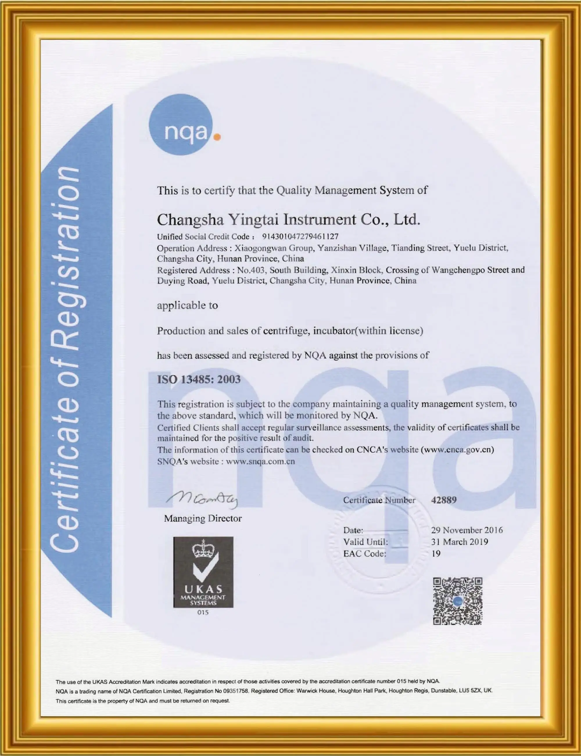 Our centrifuges are CE, ISO9001, ISO13485, IQnet certificated.