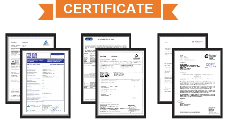· All products destined abroad are in compliance CE,CB,GS,SAA,EMC,ETL and comply to PAH, RoHS and REACH