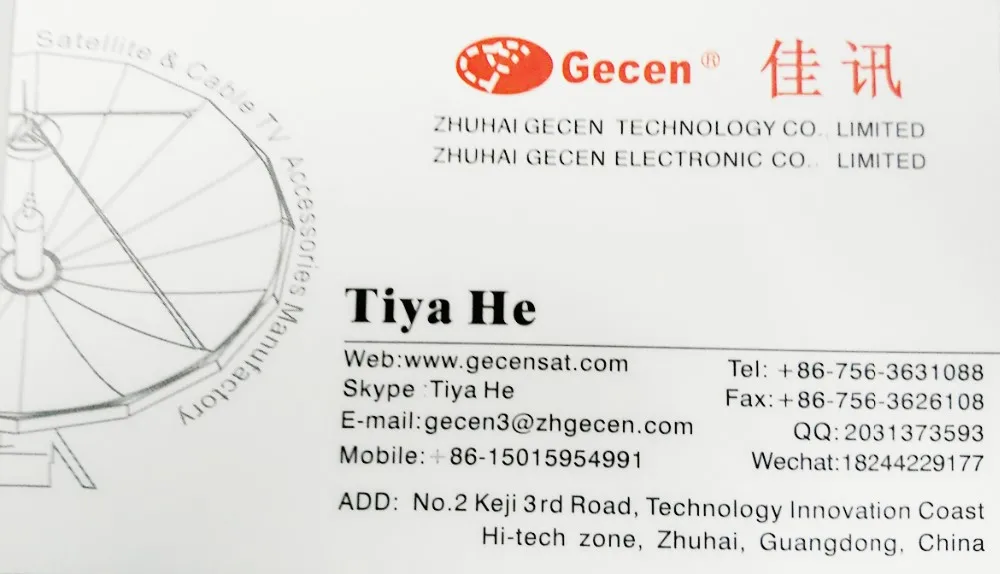 | Brand Name: | Gecen; | Return Loss SAT;Terr: | 12dB;10dB; |
