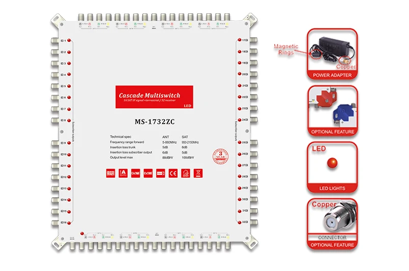 | Output: | 8/12/16/24/32 subscriber outputs; | Frequency Terr: | 47-862 MHz; |