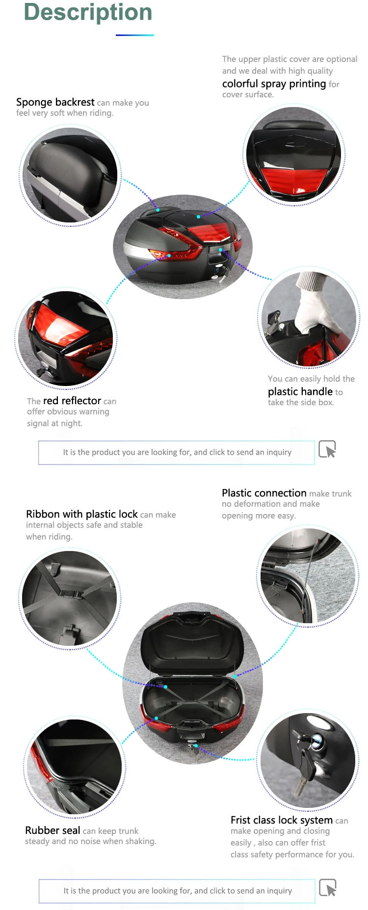 | Material: | Plastic; | Product name: | Motorcycle luggage box; |