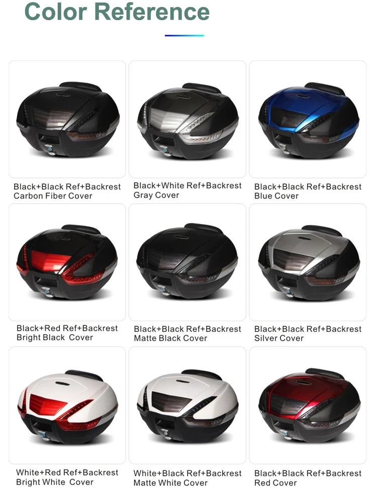| Packaging Detail: | 1.Supply packing: neutral packing,export carton with color box/PP bag/blister packing; 2.OEM clients packing design is also available for Top quality motorcycle luggage box and cargo box for motorcycle.; | MOQ: | 100pcs; |