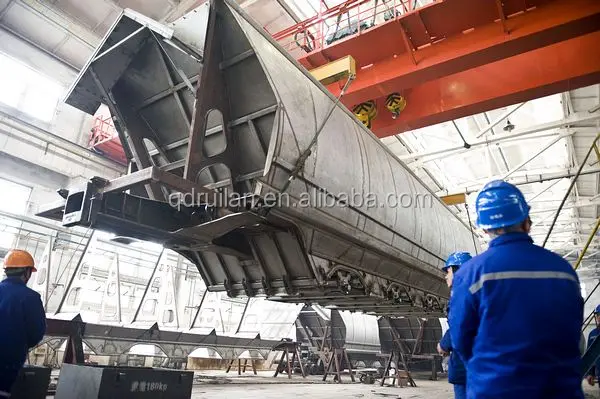 The wagon's body is welded loading structure fully made of monobloc steel plate with big arc shape, And without middle beams,consists of underframe,side frame,end walls,doors,hopper,wagon top,cap for loading goods,etc.