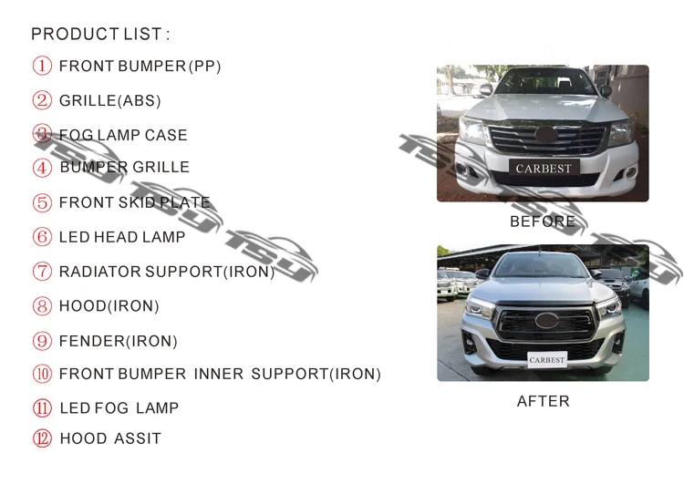 | 1:Product name: | High Quality New Body Kit For Toyota Hilux Vigo Upgrade to Rocco 2018 | |||||||