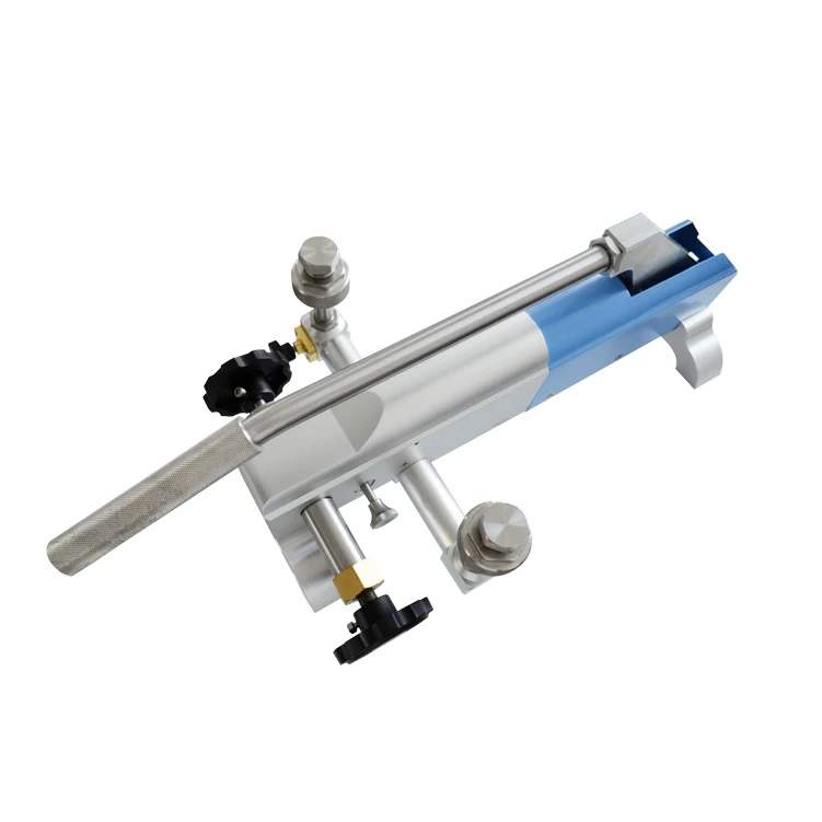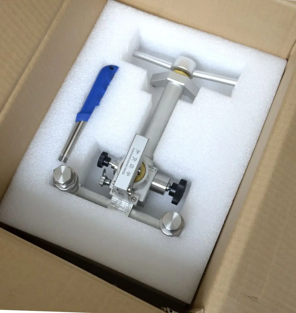 HS703 Pneumatic comparator is portable structure and designed to generate pressure from vacuum to 60bar.The F-adjust valve could accomplish 0.1mbar(10Pa)pressure resolution.Especially the lever lead screw design makes user operate in economize labor.The design of reverse valve makes the switch of vacuum and positive pressure more smooth.Two standard pressure outputs are easy to connect gauges under test without using the wrenches.It widely calibrates pressure instruments in field and laboratory.