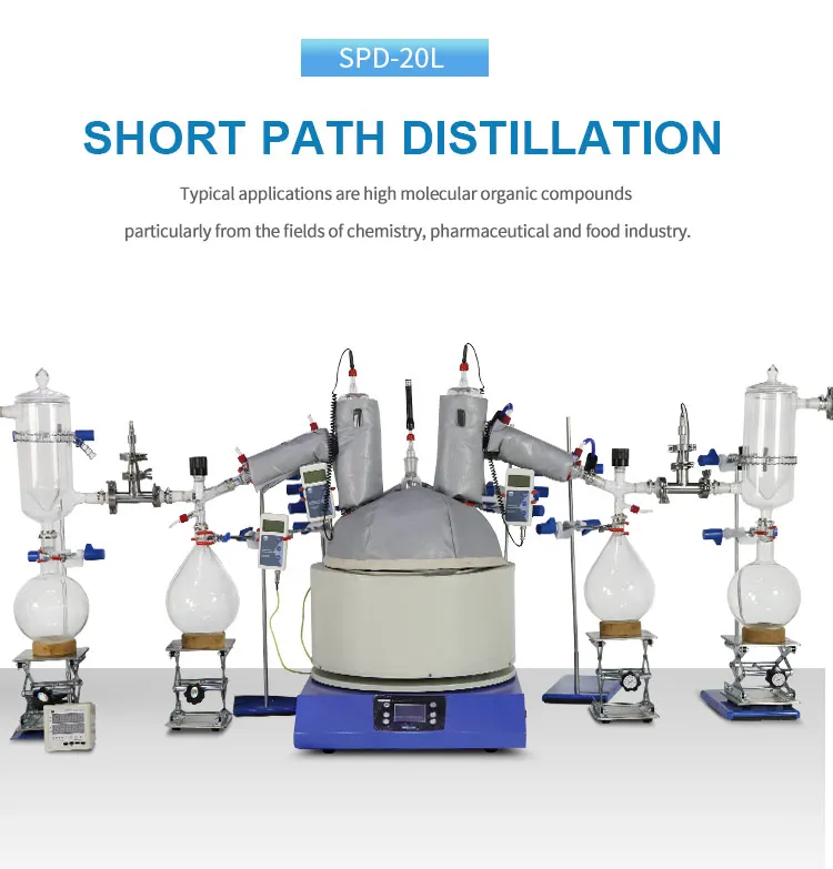 The short path distillation is widely used in Pharmaceutical industry, laboratory fractional distillation and purification, essential oil/CBD oils extraction, etc.