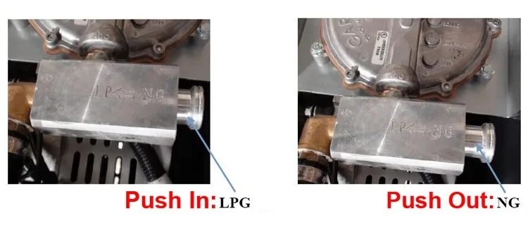 - Push in for LPG and out for NG
