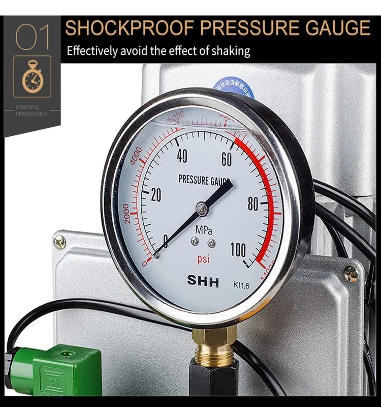 2.Over pressure safety value unit could avoid over pressure damage. At 700kg/cm2, automatically release.