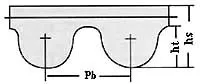 | Type | Pitch Pb(mm) | Tooth height ht(mm) | Belt thickness hs(mm) | Angle β° |