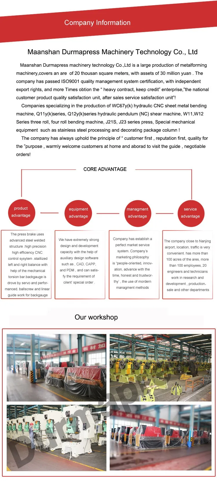 Durmapress is a mature Brand in China,through our many years research in technology,our design including structure and detailed sercurity and precision has enhanced grearly and can match all the CE standard or more strict standard.Our machines distribute worldwide to about 50 countries where there are metal plate industry,there are Durmapress machines.And where there are our machines,there are good reputation and terminal user satisfaction.