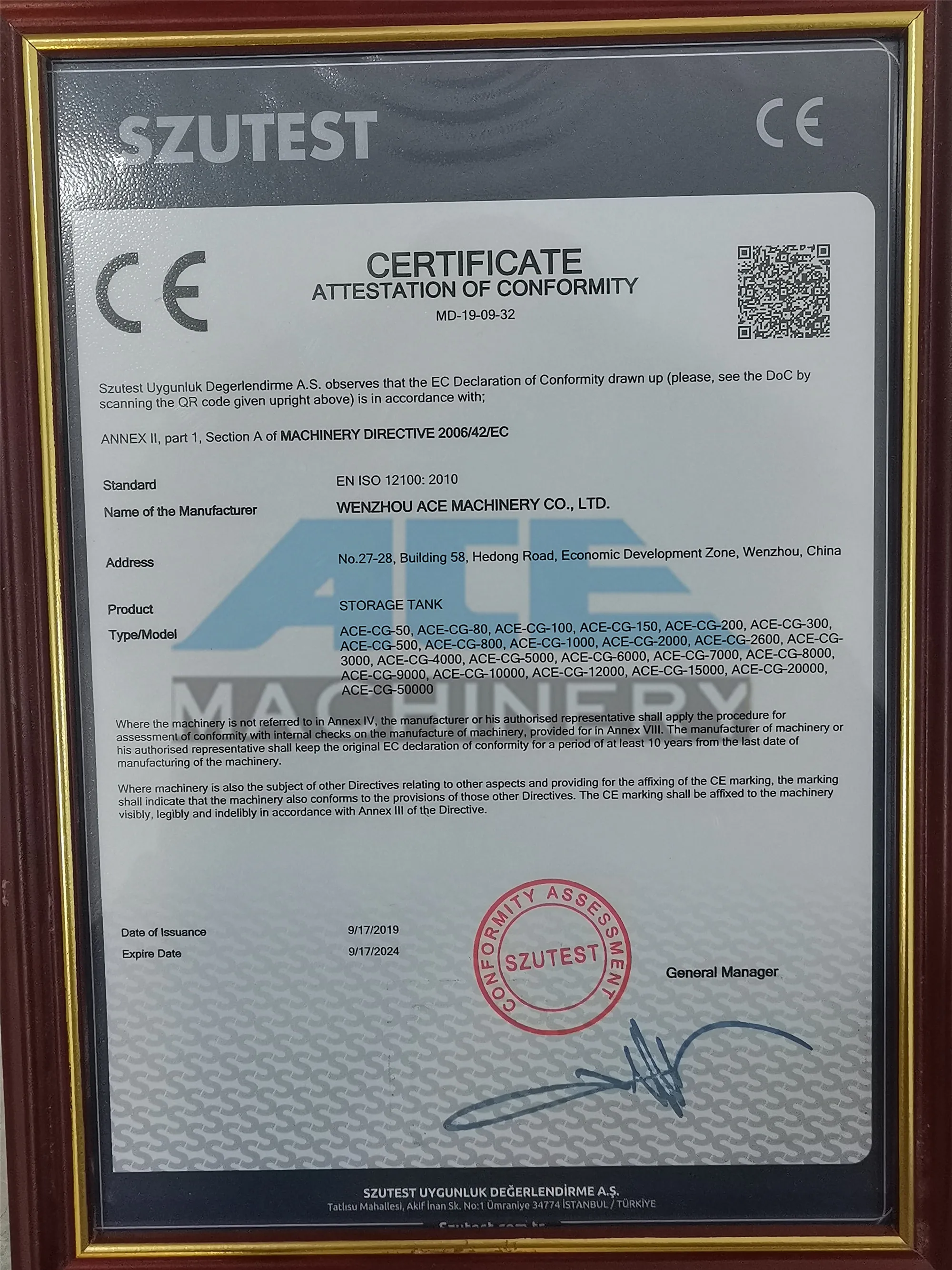 | Standard Component: | Manhole, sight glass, cleaning ball, etc; | Core Components: | Pressure vessel; |