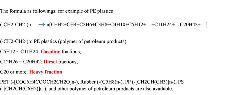 | 1 | Pyrolysis reactor | High temperature pyrolysis / cracking under the anaerobic condition; converting plastics to oil vapor |