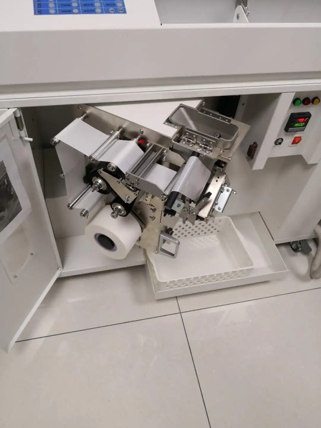 This machine can perform medicine packaging operation independently. The operation on panel display in Chinese.