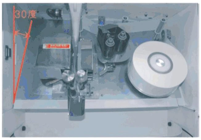 The board is setting on machine by 30° tilt, and make the cleaning and changing packing paper/ribbon easier.