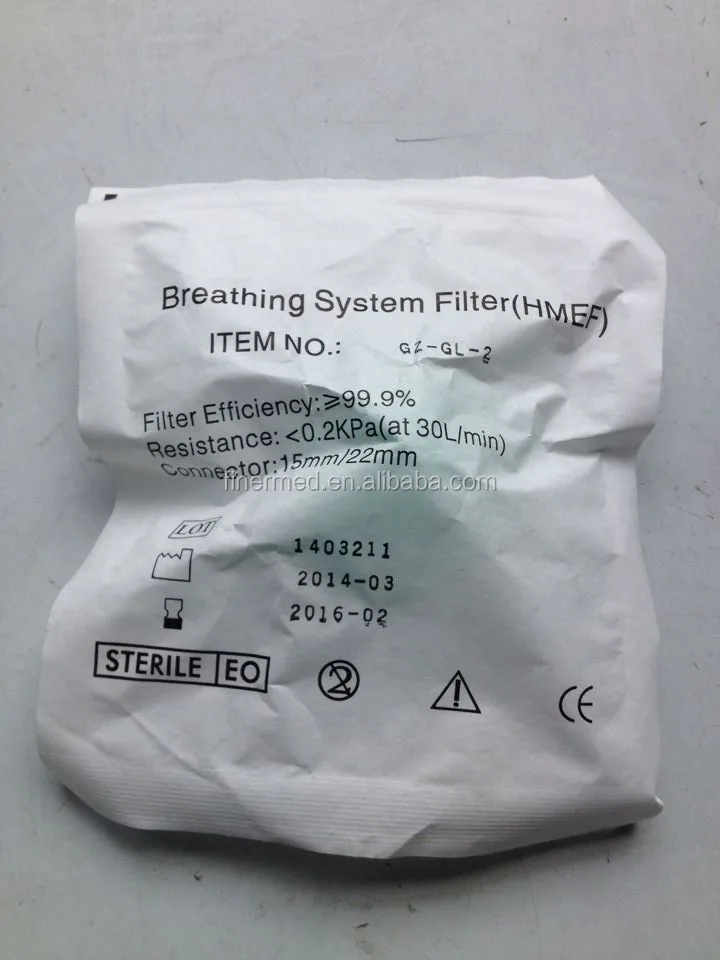 breathing system hme filter (hereinafter referred to as breathing filters), respiratory filters for single use, mainly for breathing machine and anesthesia machine pipeline filter bacteria, particles and increase the degree of wet gas, can also check in lung function pulmonary function tests with the equipment for use in patients with bacterial pathogens for filtering droplets to protect spirometry equipment, but also prevent cross-infection.