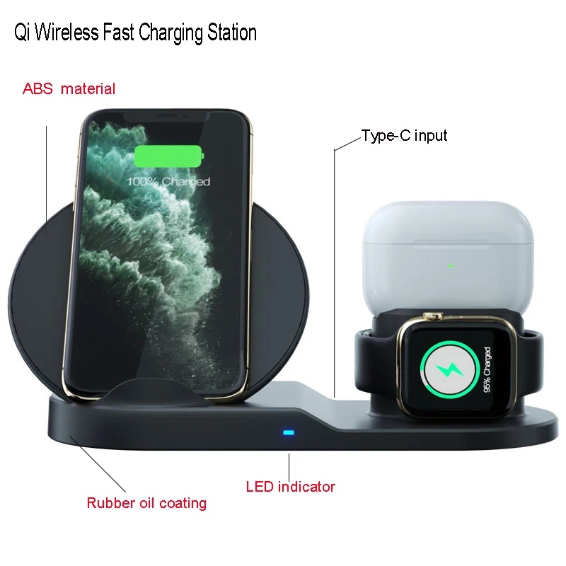 | Items | 10W 3 in 1 Qi Fast Wireless Charging Station For iphone Apple Watch Airpods pro |