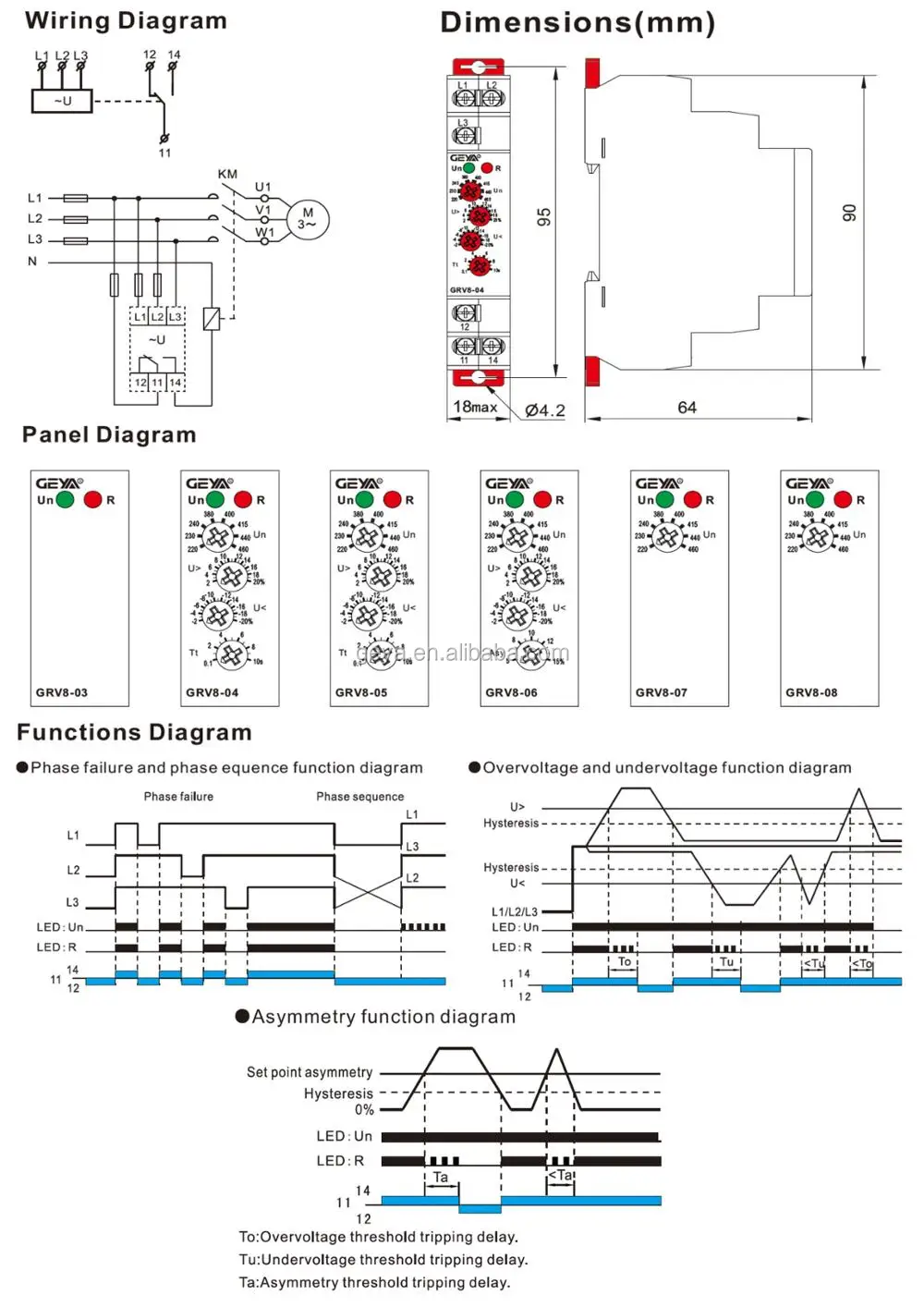 | Product Code | Over Voltage | Under Voltage | Asymmetry | Delay Time | Phase Sequence | Phase Failure |
