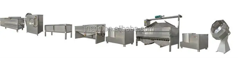 Peeler and washer→ cutter→ cold and hot water sinks →Water dehydrator →Oil-water separate fryer→Oil dehydrator→Flavor → packing machine
