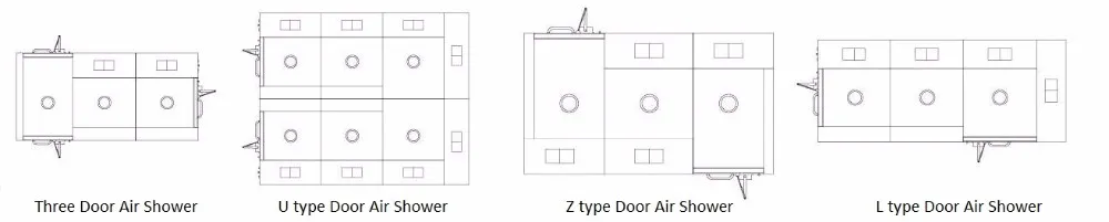 Air Shower is used to blow away dust on clothing, equipments, materials and tools before workers or objects enter the Clean Room; meanwhile, its Air Lock function may effectively control personnel passing in and out, as well as act as various levels of buffer room for clean room to prevent cross pollution.