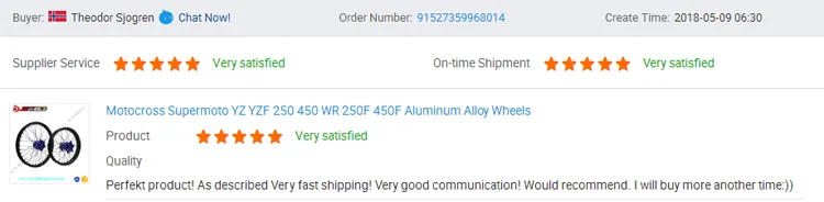 | Packaging Detail: | Factory price 17 inch motorcycle spoke wheel in different color for exc sxf 1. bubble bag+carton box 2. as customers' request; | Supply Ability: | 800 Set/Sets per Month Factory price 17 inch motorcycle spoke wheel in different color; |