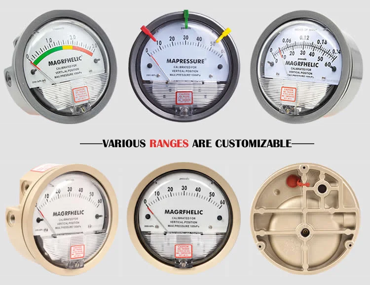 Series TE2000 MAGRFHELIC® Differential Pressure Gauges are widely utilized for measuring pressure of fan and blowing machine, resistance of filter, wind speed, furnace pressure, differential pressure of pore plate, the pressure of drum water level, liquid amplifier and hydraulic pressure system. Meantime, they are used to control the automatic valve and specific value of air-producer gas in combustion and they are used to test blood pressure and respiratory pressure in medical health care equipment. There are more than 81 models to suit your needs precisely. The key components adopt import materials.