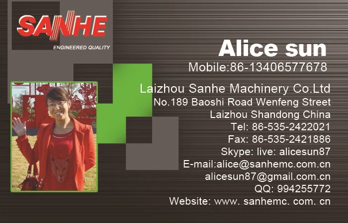 "Loyal service ,quality engineered products, and technical innovation " is always our company principle and pursuit , and we look forward to a close cooperation with you providing you with our untiring service !Welcome to Sanhe machinery!