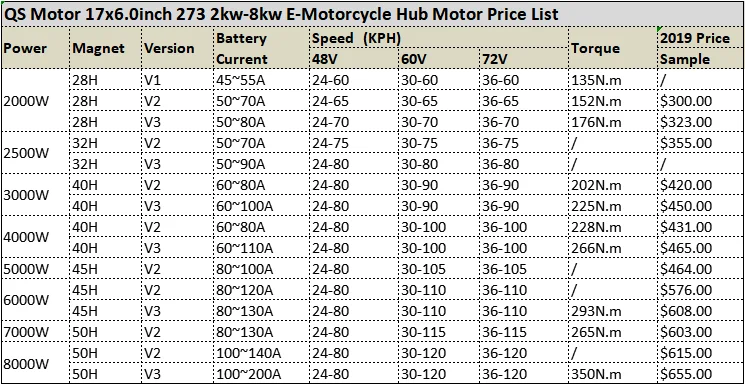 QS Motor 17inch 273 2000W-8000W E-scooter/Motorcycle List