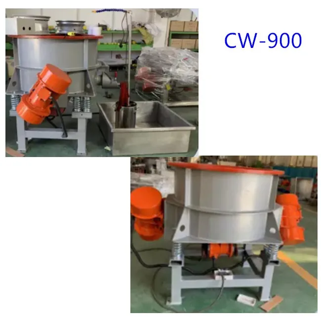 Chenwei Series Vibration Polishing Machine has a ring chamber to hold media (abrasive stones) and workpieces.When the machine start working,it makes three-D high frequency vibration.This motion makes the media work on surface of workpieces upward &downward;leftward and rightward;frontward and backward.The process is similar to handwork of surface polishing.